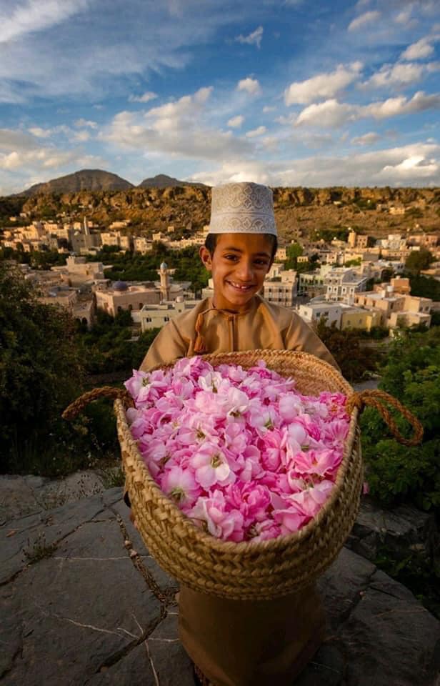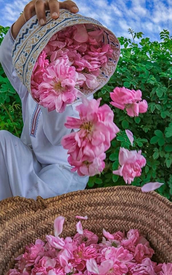 ومع حلول فصل الربيع تتفتح الورود وتتحول المرتفعات الخضراء إلى مسطحات وردية، يعبق منها أريج الورد الجوري، معلناً بدء موسم حصاد الورد، الذي يحوله المزارعون إلى ماء الورد الذي تشتهر به السلطنة.